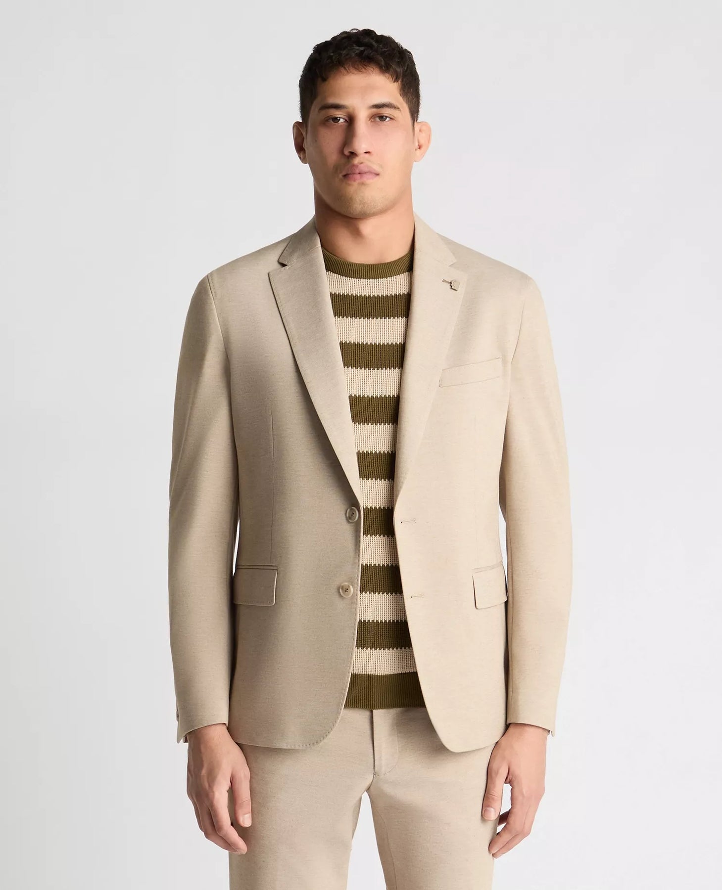 A smart layer designed for ease, not stiffness. This jacket, crafted from a soft stretch-blend fabric, moves comfortably with you throughout your day, making it an easy choice when you want to look pulled together without feeling restricted. Pair it with matching trousers for a coordinated look or wear it over a tee to keep things casual. Crafted from a soft stretch-blend fabric designed to move comfortably with you. Relaxed shirt-style shoulder for an easy, natural fit